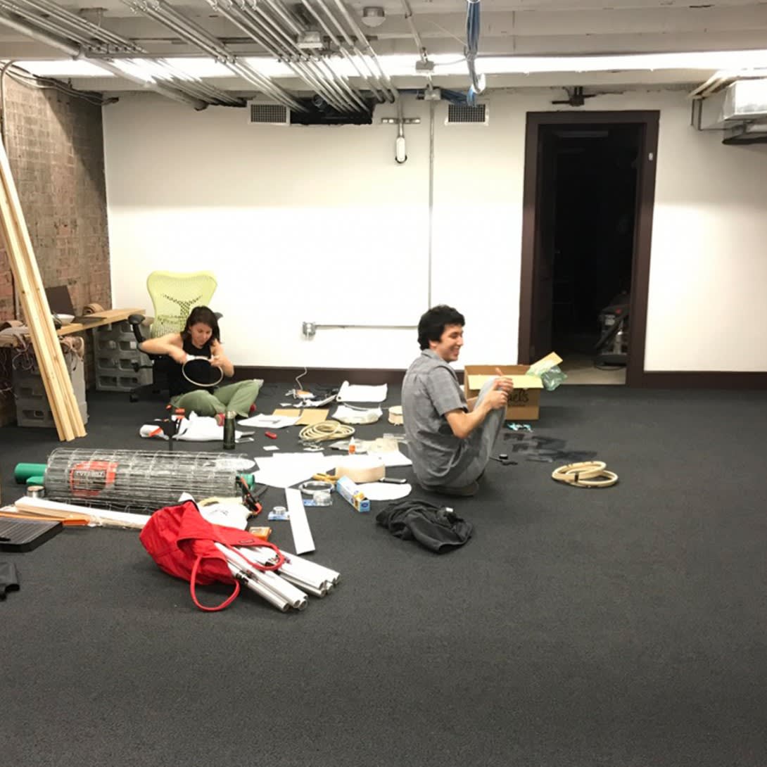 Nina and I worked on building and designing each circle, iterating over different ideas and thinking through the best materials for each part of the display. While building out the wooden circles, Nina thought up the brilliant idea of writing “Let’s Make Something Awesome” within the circles. The phrase filled the 24 circles perfectly, and, to our great relief, all of the puzzle pieces fit together during installation without any hitches.