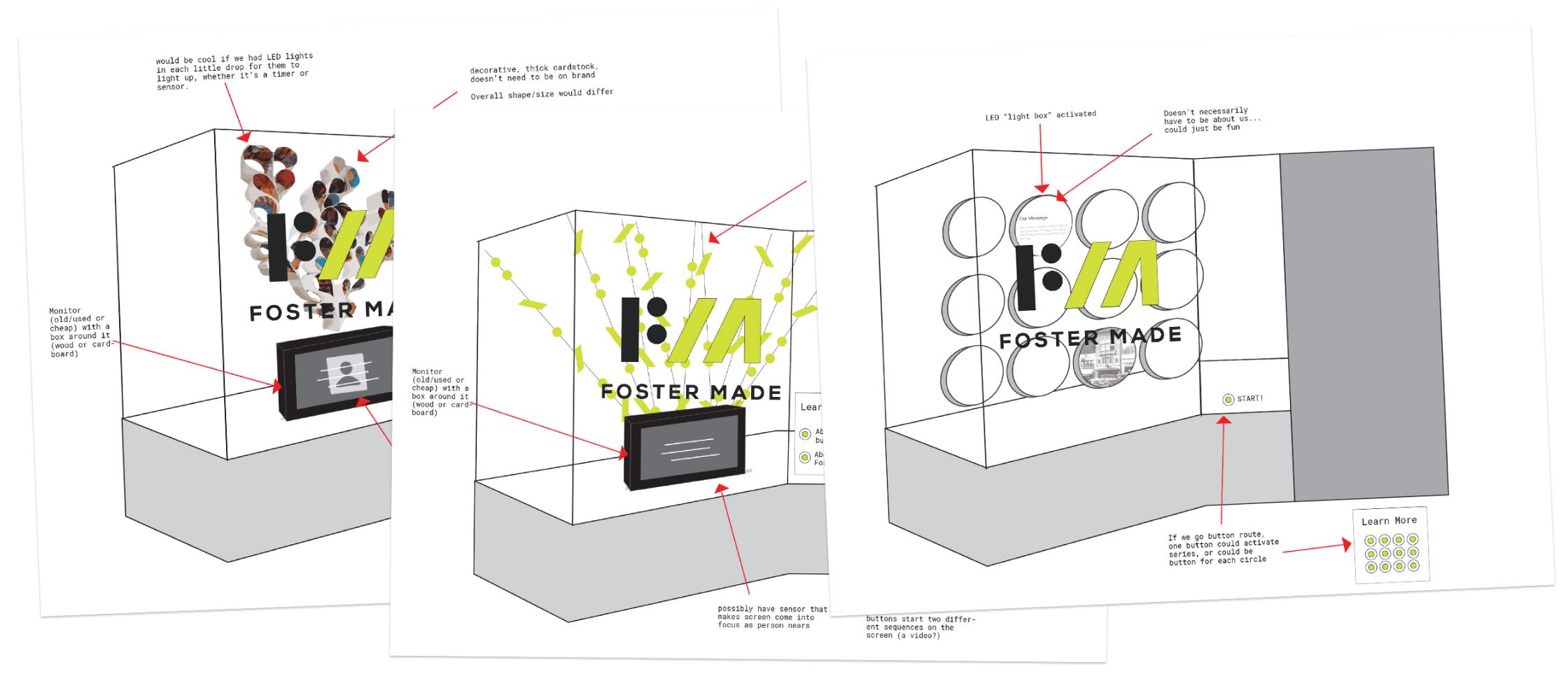 As we were brainstorming through our next store display, we decided now would be another great opportunity to bring our programming work to the physical world. Nina and I whipped up a slew of ideas, thinking about motors, projectors, capacitive touch sensors, and all sorts of electronic components.