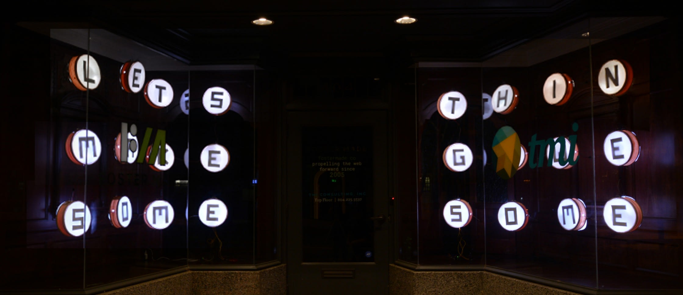 Animation patterns were designed by the crew here at Foster Made using a quick tool I updated from one of my old projects: http://fm-window.shmah.com/. The tool gave us a quick way to easily play around with these bits and bytes without worrying about playing around with bits and bytes. The tool’s gui exports the byte arrays in the background.
