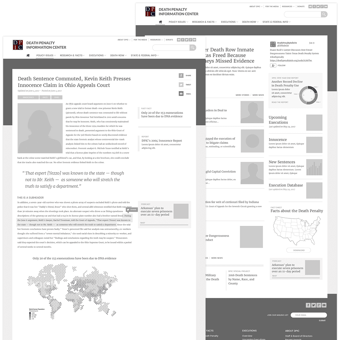 This was the case in our work with the Death Penalty Information Center (DPIC), and after much hard work and anticipation, we are beyond thrilled to launch DPIC’s new website. Beyond thrilled. DPIC is a national non-profit organization serving the media and the public with analysis and information on issues concerning capital punishment. Founded in 1990, DPIC promotes informed discussion of the death penalty by preparing in-depth reports, conducting briefings for journalists, and serving as a resource to those working on the issue.