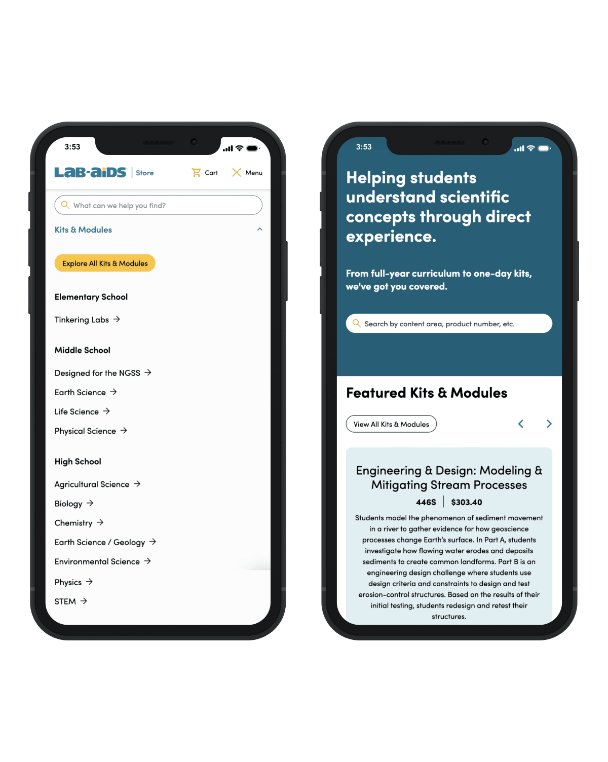 Lab-Aids approached us with a relatively simple ask: to visually align their online store with their marketing site and update software on the backend. However, after close collaboration and discussion, we discovered opportunities to make impactful improvements to the store’s design and functionality. Our recommendations included a more comprehensive redesign of the online store and upgrades to optimize performance.